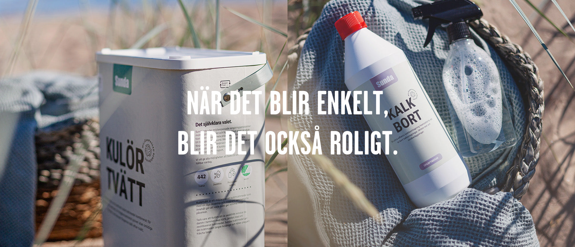 Det, du finder på butikshylden, er blevet transporteret flere hundrede kilometer og er fortyndet med vand og råvarer, der faktisk ikke engang er nødvendige i vores svenske miljø. Vores produkter er simpelthen designet til at blive brugt i den svenske hverdag med så lidt fodaftryk som muligt inden for fremstilling, råvarer, emballage og transport.