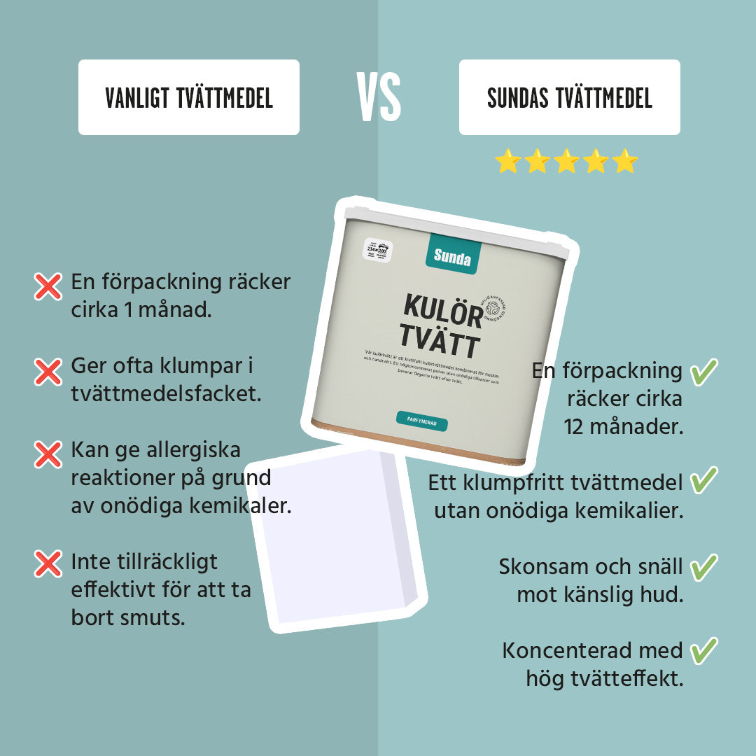 Udskift dit sædvanlige vaskemiddel og opdag fordelene ved Sundas vaskemiddel.